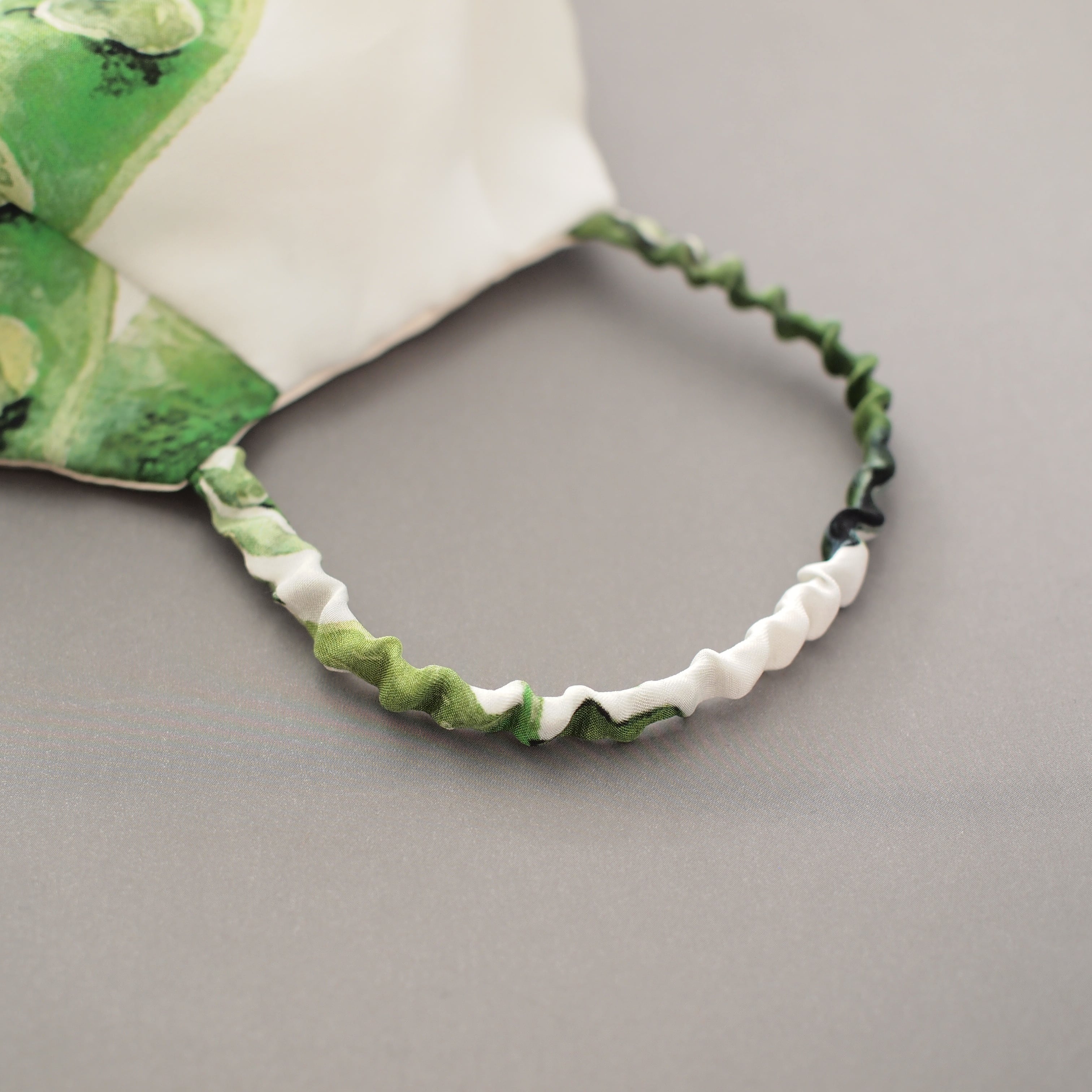 耳にかかるゴム部分も、共布のシルクで包むことで、