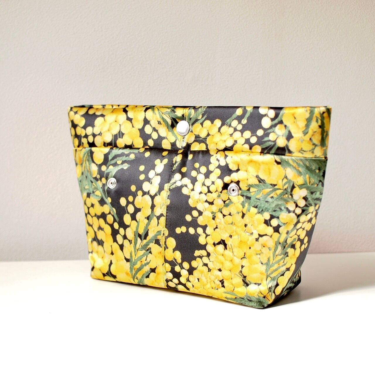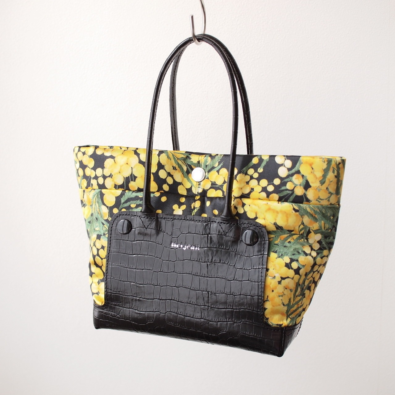 オートクチュールバッグ《Hana》 布・革セット ミモザ ブラック Mサイズ