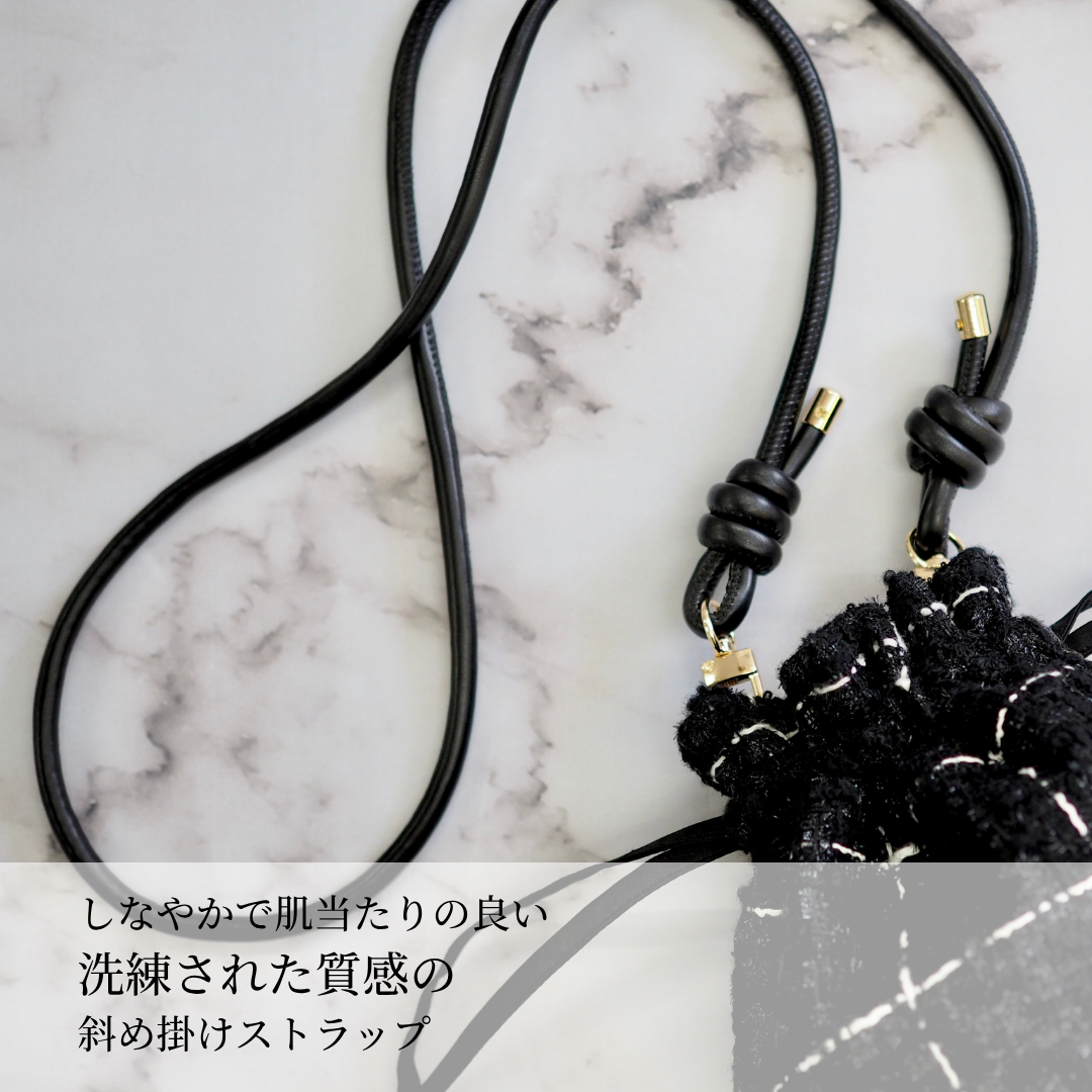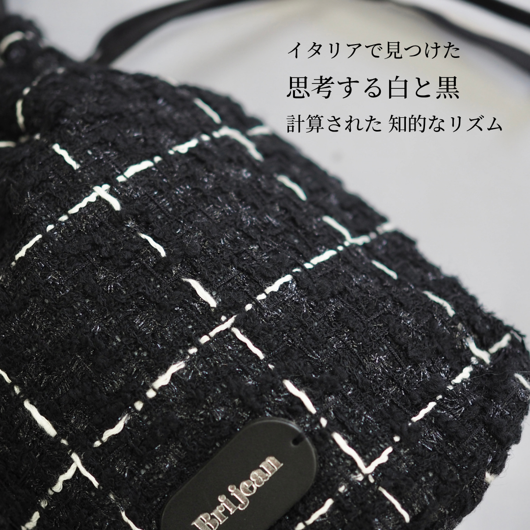 【受注お仕立品】秘密のチェスボード ≪イタリア製モノトーン・ツイードの斜め掛け巾着ポシェット≫